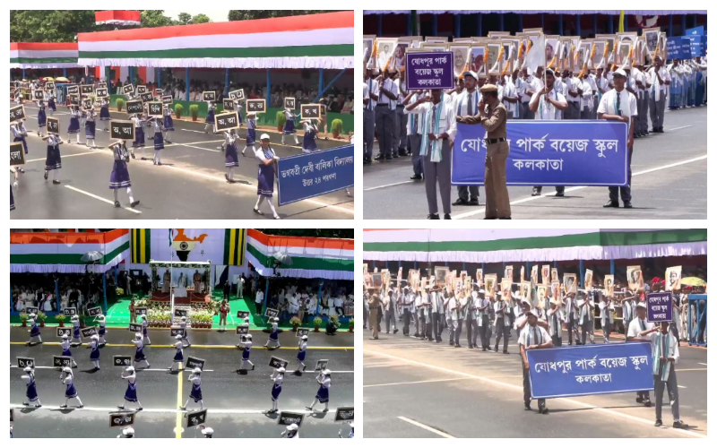 নিজস্ব প্রতিনিধি : গোটা দেশের পাশাপাশি শহর কলকাতাতেও পালিত হয়েছে ৭৯ তম স্বাধীনতা দিবস। রেড রোডের অনুষ্ঠানেও ভাষা সন্ত্রাসের বিরুদ্ধে বার্তা দিতে দেখা গিয়েছে। এদিনের অনুষ্ঠানে হাজির ছিলেন মুখ্যমন্ত্রী মমতা বন্দ্যোপাধ্যায়, প্রশাসনিক কর্মকর্তা থেকে শুরু করে একাধিক স্কুল পড়ুয়ারা। শুক্রবার সকালে রেডরোডের অনুষ্ঠানে পড়ুয়াদের হাতে দেখা গিয়েছে বাংলা বর্ণমালা। পাশাপাশি বাঙালি মণীষীদের কাট আউট নিয়ে […]
